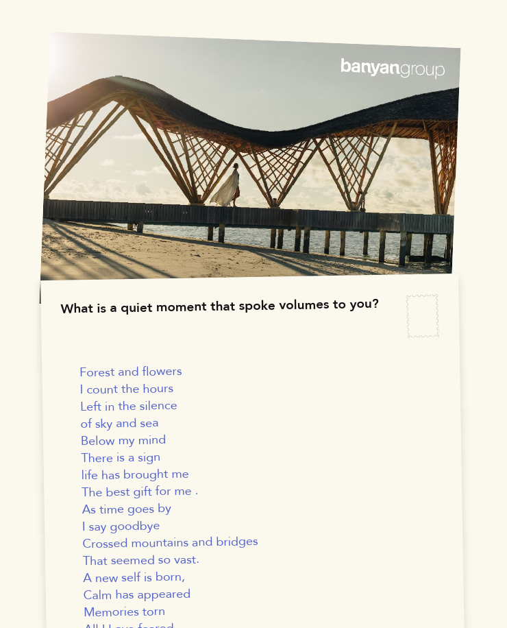 The Banyan tree stood in quiet beauty, its branches filtering warm sunlight. Beneath it, the sparkling pool invited us to dive in, each splash echoing our laughter. The aroma of Thai food filled the air and as we shared meals, our conversations deepened. In those moments, I realized that true beauty lies in being present, cherishing laughter and love, crafting lasting memories for a lifetime.