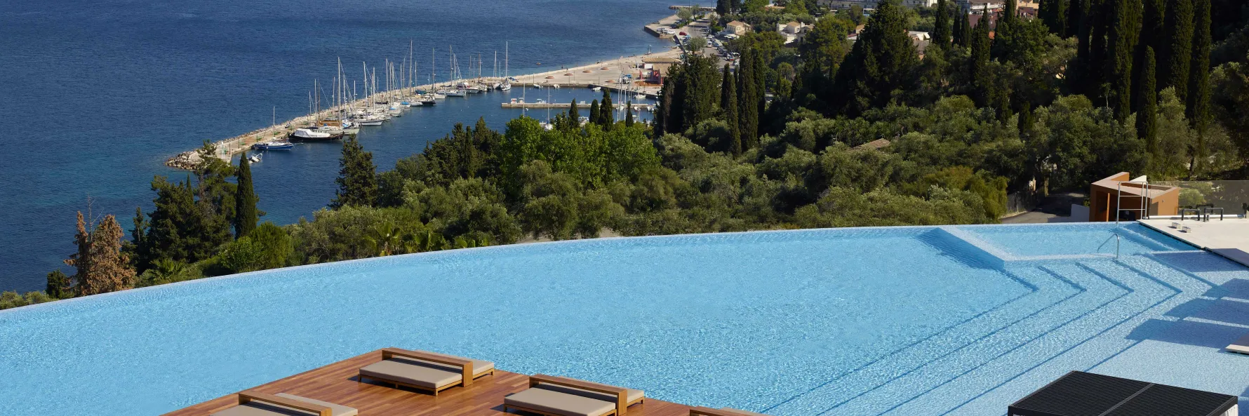 Set on an idyllic lush green hilltop overlooking the turquoise waters of Benitses Bay, Angsana Corfu offers chic, contemporary accommodation with far reaching sea views.