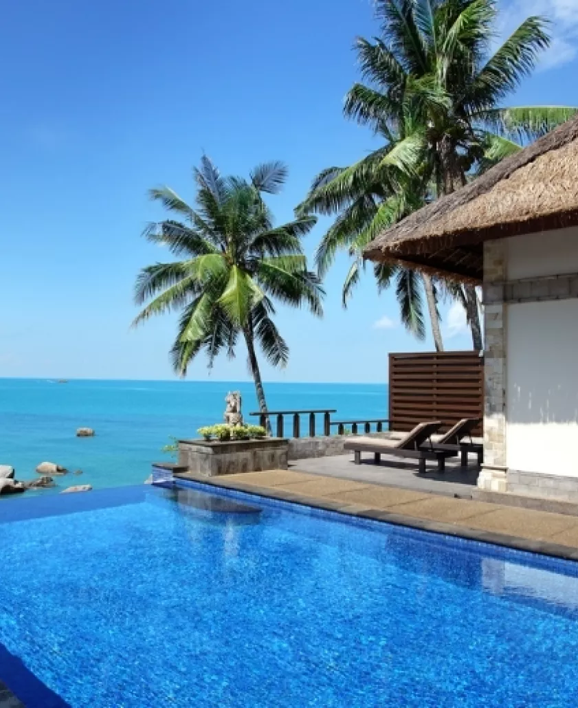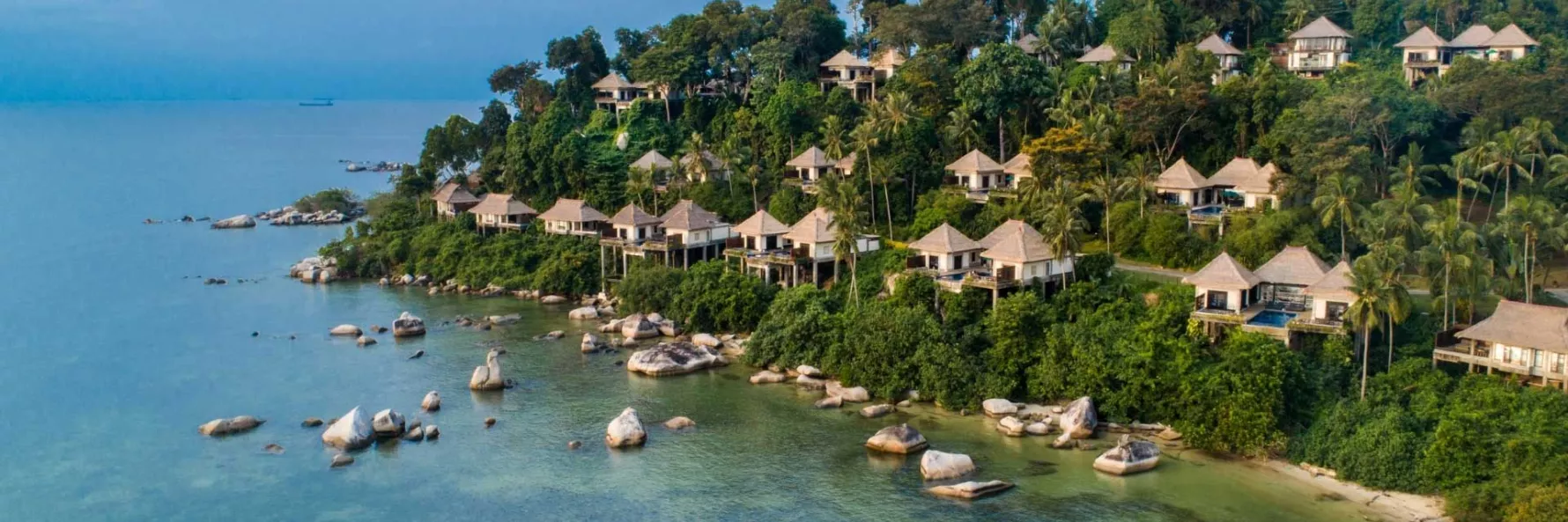 Immerse yourself in a natural sojourn on Bintan Island, where lush rainforests come alive across towering trees, hillside terrain, secluded beaches and sweet songs of wildlife. Banyan Tree Bintan offers stunning views of the South China Sea from traditional Balinese style villas, each raised with stilts and set on hillsides.