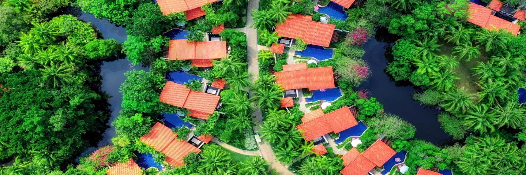 The luxury villa resort of Banyan Tree Sanya sits in the serene Luhuitou Bay on the southern coast of Sanya, Hainan Island. With 49 pool villas set along a tropical lagoon on an expansive 13-hectare estate, this oceanfront hideaway features a contemporary blend of Oriental touches and lush tropical design.
